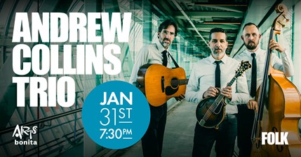 The Andrew Collins Trio is a genre-defying acoustic ensemble centered on the extraordinary versatility of mandolin virtuoso Andrew Collins. Often featuring Adam Shier (guitar, mandolin, vocals) and James McEleney (bass, mandocello, vocals), the trio blends bluegrass, folk, jazz, classical, and Celtic influences, spawning a sound playfully dubbed “chambergrass.”