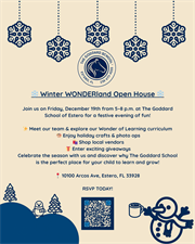 Please join us to celebrate the season and find out why the Goddard School is the best place for your child to learn and grow! Please use the QR code on the attached flyer to confirm your attendance at our event. Happy Holidays from the Goddard Team!
